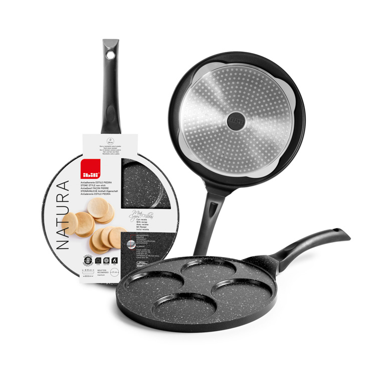 Ibili Natura Mini Pancake Pan – 4-vaks pan voor pancakes, eieren en crêpes