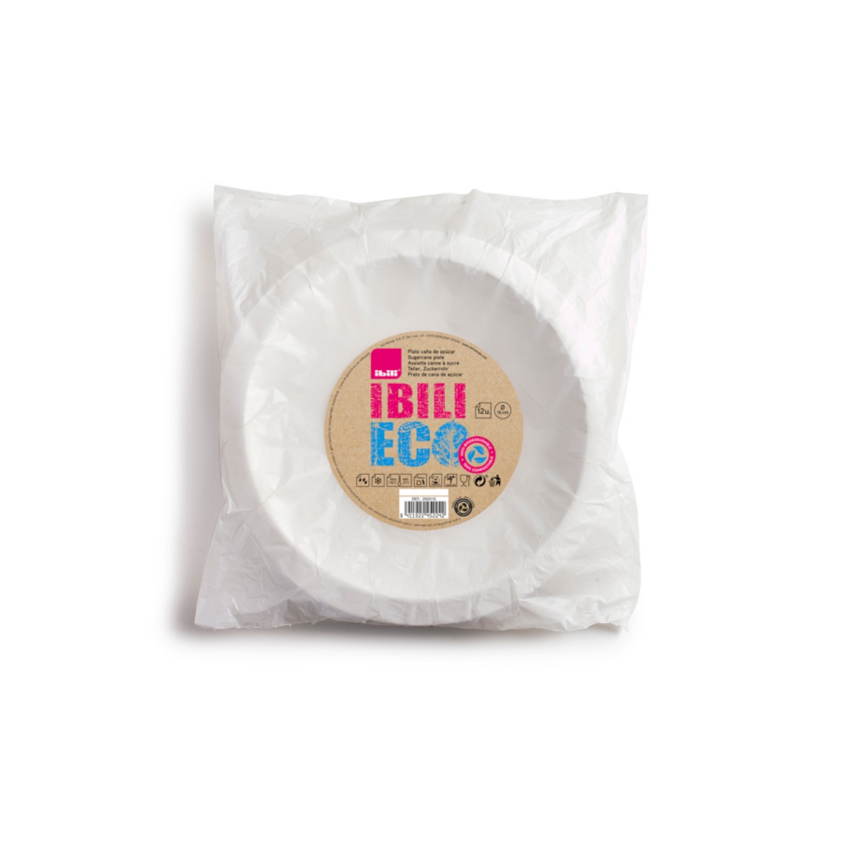 Ibili wegwerp bordjes suikerriet ECO 12 stuks