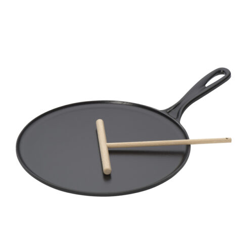 De pannenkoekenpan is gemaakt van gietijzer, wat ervoor zorgt dat de warmte zachtjes en gelijkmatig wordt verdeeld voor een perfect resultaat. Dit maakt de pan geschikt voor gebruik op de oven, kookplaat, inductie of onder de grill. Bovendien houdt de gietijzeren constructie de warmte vast, waardoor uw overheerlijke creaties langer warm blijven aan tafel.